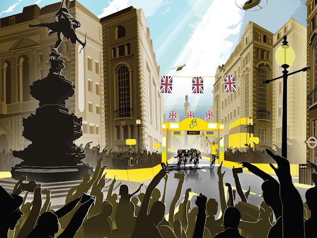 All the details of the London stage can be found on the Aviva Tour of Britain website here.  The beautiful picture of Piccadilly Circus featured in this post is by artist Will Barras and was specially commissioned by cycling website Rouleur, where it is available for purchase.