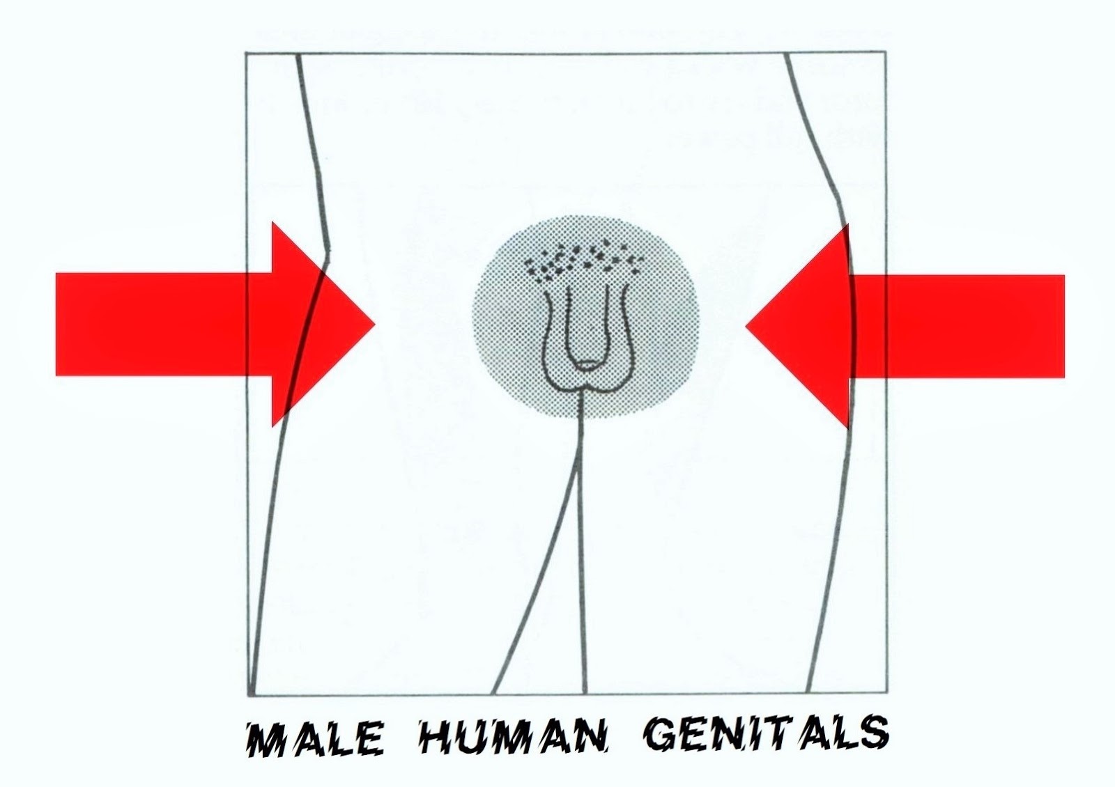 So, The Balls. The balls is a rather jaunty term for that area of the male body that houses the penis and testicles, the reproductive organs that men think so very important (well, they obviously are, but not so much on an individual basis). A smack on the penis itself will result in little more than a shocked expression, so you need to focus on the undercarriage, the recess of the groin, where the testes hang like fat pink bats. This is your target, an area of great sensitivity, so much so that you can cause excruciating discomfort simply by flicking them with the outside of your hand. Catching them with a foot or a fist will cause great pain. Squeezing them will prove excruciating. Be emphatic in your grip and relentless in your pressure, they will get the message. If you are squeamish, please remember that, for the most part, the agony will only be temporary, although, as with any defensive move, there is a chance that you may permanently damage your attacker. Them's the busts. But don't feel too sorry for him, he is YOUR ATTACKER after all. Who knows, you may have put him out of business once and for all.