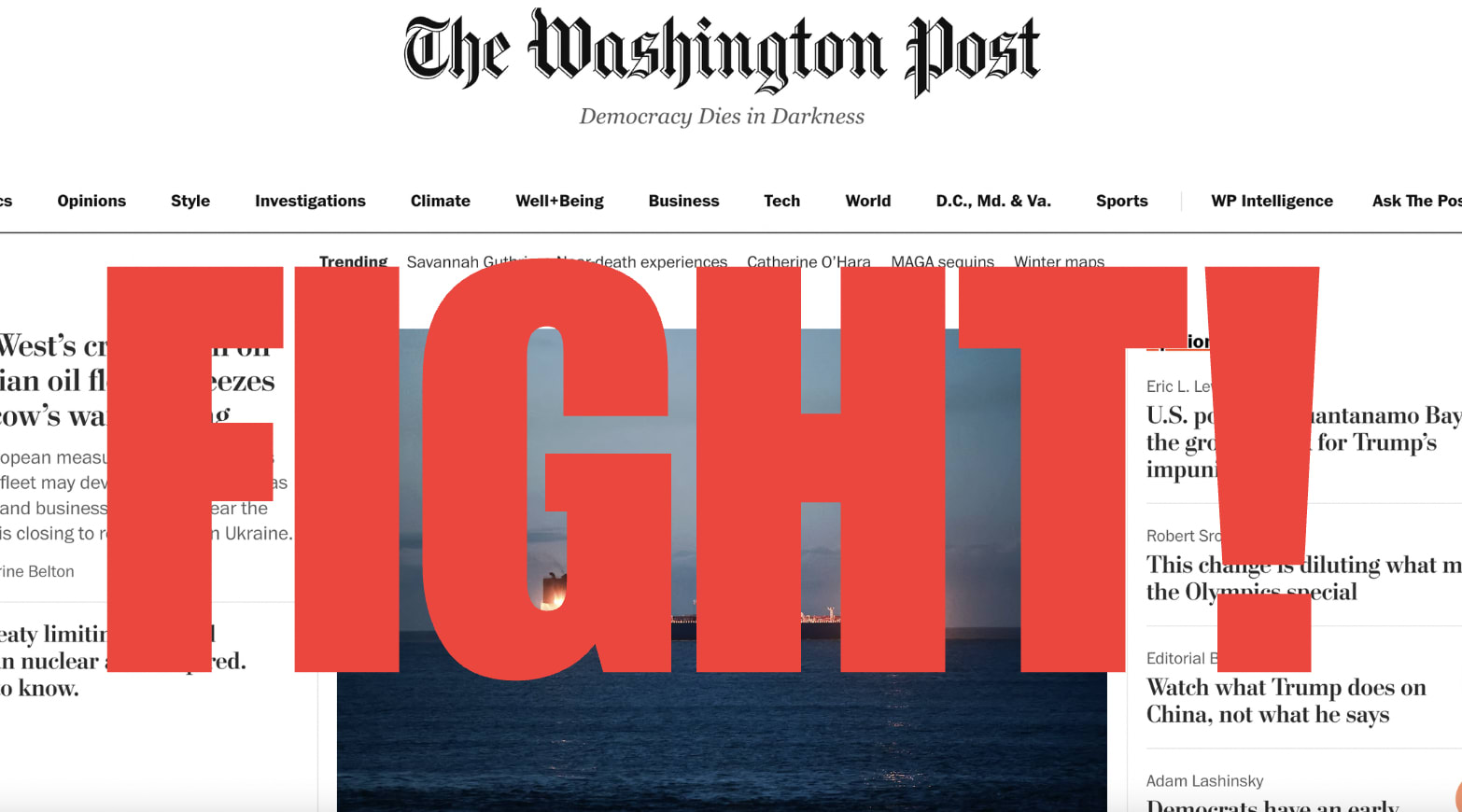 Random women with better headlines than any editor in AmericaOver on the Guardian's UK website on Wednesday, there was not a single mention on the front page of what was happening. Trump's Gaza spectacular diversion strategy drowned out its quotient of American news. We just weren't seeing what's happening in the seat of government of our closest ally. As a private citizen mounted a takeover of the cornerstone superpower of the international rules-based order, our crucial NATO ally, our biggest single trading partner, the UK government didn't even apparently notice.