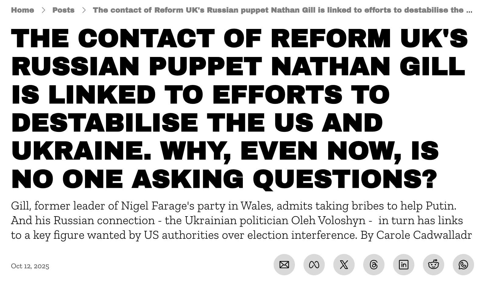 This is going to get so much worse. Musk and MAGA will see this as the opening of the Stasi archive. It's not. It's rocketfuel for a witchhunt. It's hybrid warfare against the enemies of the state. It's going to be ugly and cruel and its targets are going to need help and support. Hands across the water to my friends at OCCRP, the Overseas Crime and Corruption Reporting Project, an investigative journalism organisation that uncovers transnational crime, that's been in Musk's sights this weekend, one of hundreds of media organisations around the world whose funding has been slashed overnight.