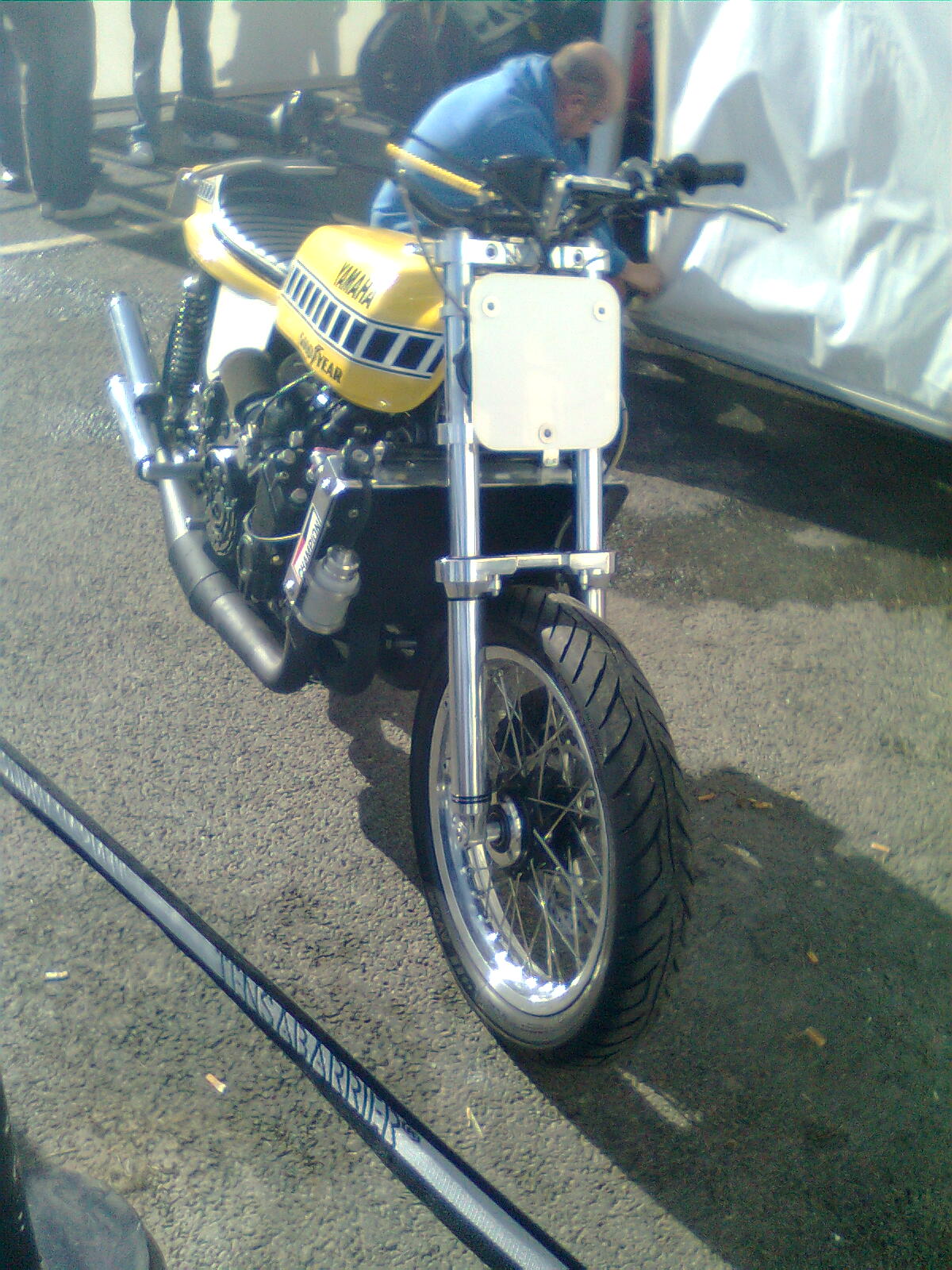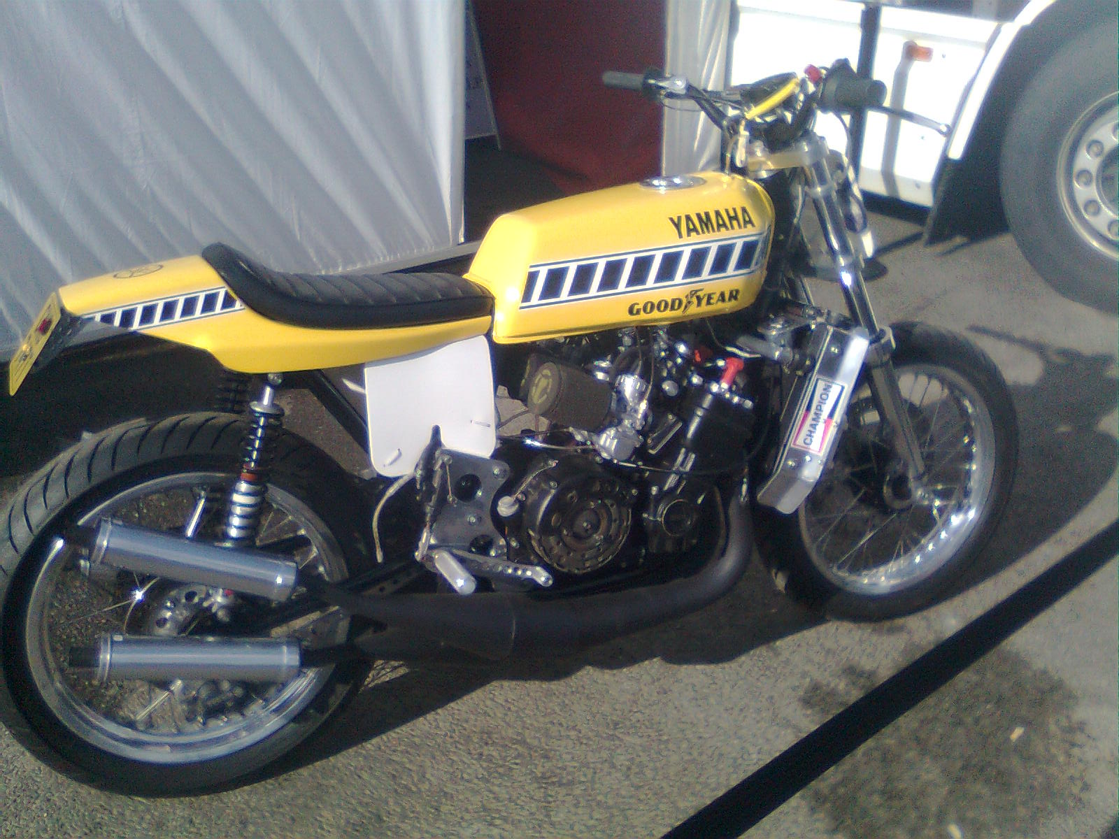 TZ750 flat tracker homage to Kenny Roberts. Seen at Cadwell Park in the pits.
